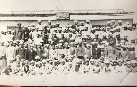 تصویر۵: تأسیس نخستین فخرالمدارس در کنار جوی انجیل، نزدیکی مقبرۀ گوهرشاد: در این تصویر از مدرّسین محمدعمر مطیع سلجوقی، مولوی نوراحمد، مولوی ملامحمد غوری، مولوی نعمتالله سلجوقی، مولوی عبدالوهاب سلجوقی، مولوی عبدالعزیز، مولوی ملا سراجالدین، مولوی شیراحمد و مولوی صمیم حضور دارند.